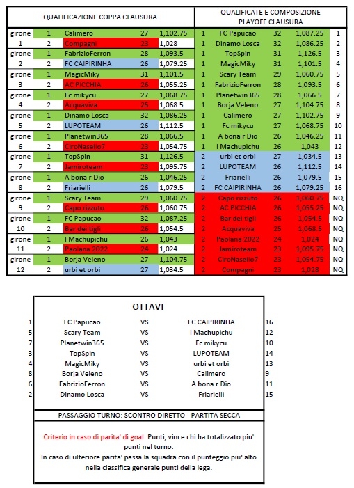 Qualificazione e Schema playoff COPPA APERTURA 2023/24