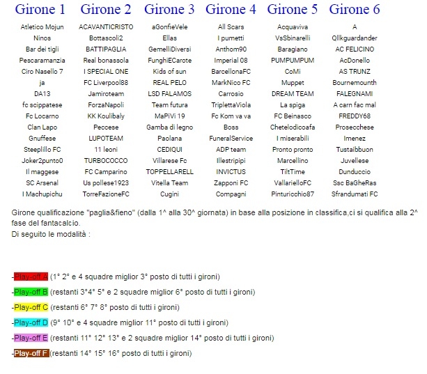 Completate le iscrizioni per il 3° Fantapagliaefieno ,a breve l'inserimento di tutte le squadre e poi generazione dei gironi qualificazione playoff scudetto e coppa Apertura.