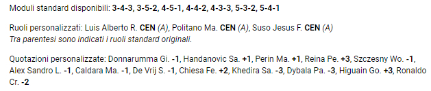 Vi riporto in questo post lo screen di quello che trovate nelle info di lega, per quel che riguarda le differenze di quoazioni e di ruoli con la gazzetta.