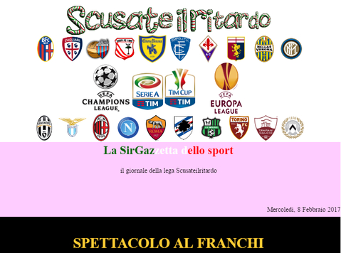 Aggiornamento effettuato. Commentate le gare di Coppa Italia giocate la scorsa giornata, e aggiornato il tabellone di Europa League con le gare disputate questa giornata.