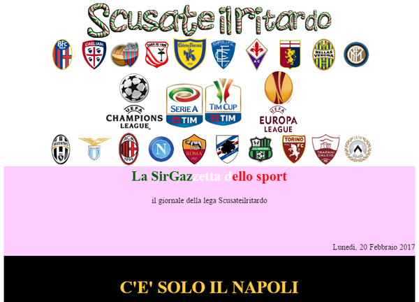 Volevo avvisarvi che l'aggiornamento slitterà di qualche giorno perché ho cambiato casa e non ho ancora la connessione ad internet, appena possibile farò l'aggiornamento delle due leghe.