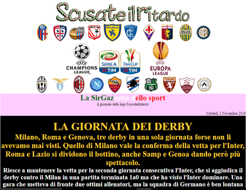 Aggiornamento effettuato. Commenti brevi visto che io ho perso. Vi ricordo che col turno infrasettimanale si giocherà il primo turno di Coppa Italia.