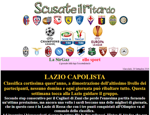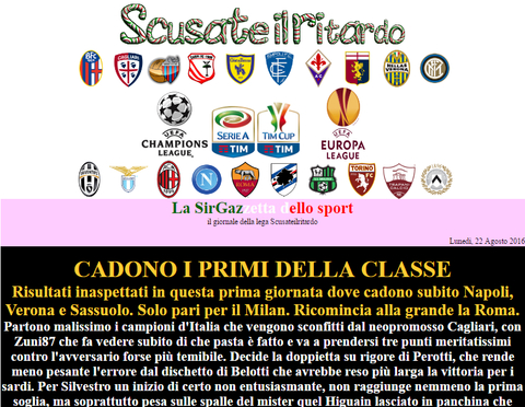 Prende sempre più forma la nuova stagione di Scusateilritardo, è stato creato anche il calendario della stagione 2016/17 che vede fin dalle primissime giornate sfide interessanti. In home di lega una breve presentazione della prima giornata di campionato.