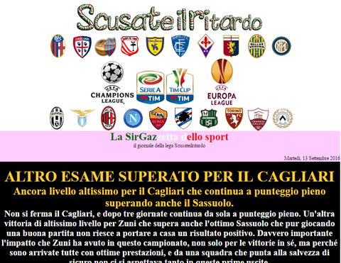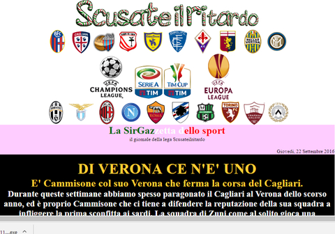 Aggiornamento effettuato. Commenti veloci viste le partite ravvicinate, ma giornata che meritava visto il grande ritorno alla vittoria di Cammisone che porta la prima sconfitta al Cagliari. Chiuse anche le qualificazioni alla Coppa Italia, con Carpi, Empoli, Catania e Chievo eliminate. A breve la creazione del tabellone.