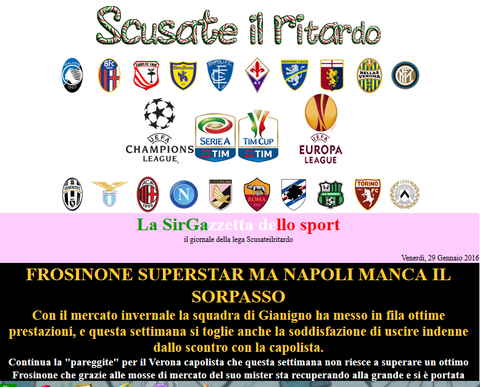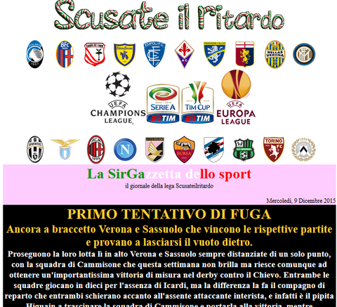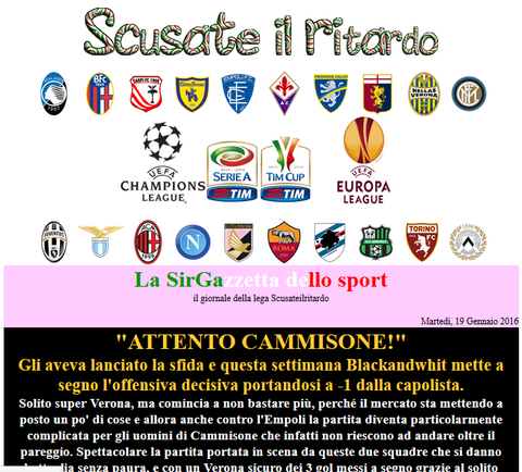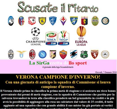 Aggiornamento effettuato. Visto il turno di campionato ravvicinato e visto che ci avviamo alla fine del girone d'andata che assegna i premi di metà stagione non ci sono i commenti sulle partite ma si è analizzata un po' la situazione di ogni squadra. E vi ricordo anche che questa giornata si sono disputate le gare di ritorno dei quarti di coppa italia.