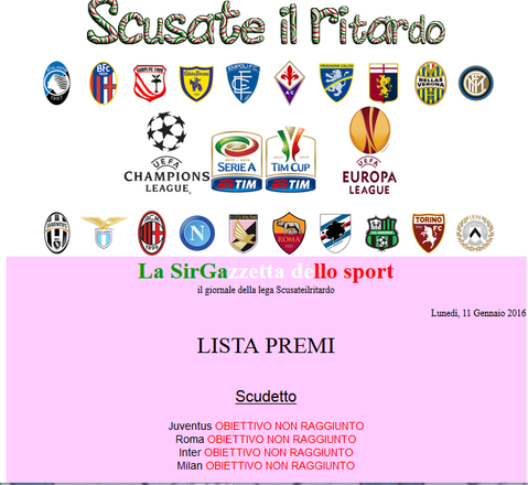 Aggiornamento effettuato. Commentata la chiusura del girone d'andata e pubblicata la lista relativa ai premi di metà stagione. Non ci sono risultati in bilico e non dovrebbe cambiare niente, ma per l'assegnazione dei premi si aspetterà comunque l'ufficialità dei risultati dopo l'uscita del referto della lega per quanto riguarda le ammonizioni.