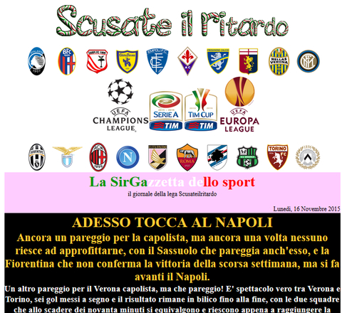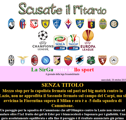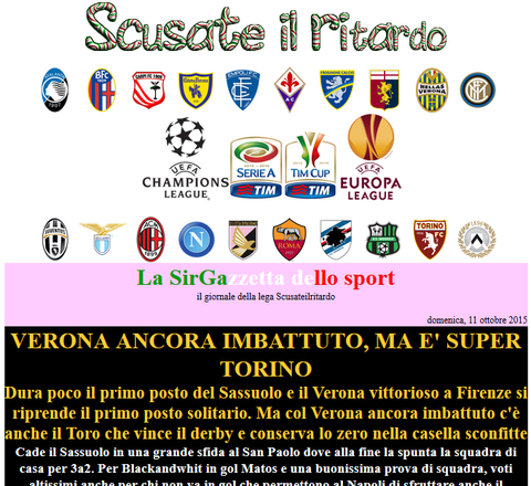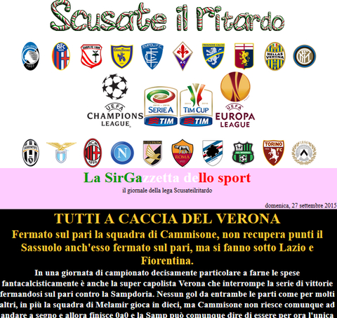 Dire che osanno la Fiorentina mi sembra esagerato, al momento l'unica che merita è lo straordinario Verona. La fiorentina è vero che non brilla per prestazioni ma è pur sempre quarta, e veniva da un turno dove era stata l'unica ad approfittare del pareggio del Verona, così come il napoli questa settimana. Ma vengono elogiate, così come trovo modo di elogiare squadre che vanno bene nella classifica a punti e pagano un calendario sfortunato, vedi udinese, genoa, empoli, così come ho elogiato la bella risalita del chievo, la tua. Quando si ha una sola squadra che comanda e nessuna riesce ad avere la stessa continuità bisogna attaccarsi anche ad una singola vittoria pur di non dover scrivere sempre le stesse cose, la colpa è di Cammisone :)