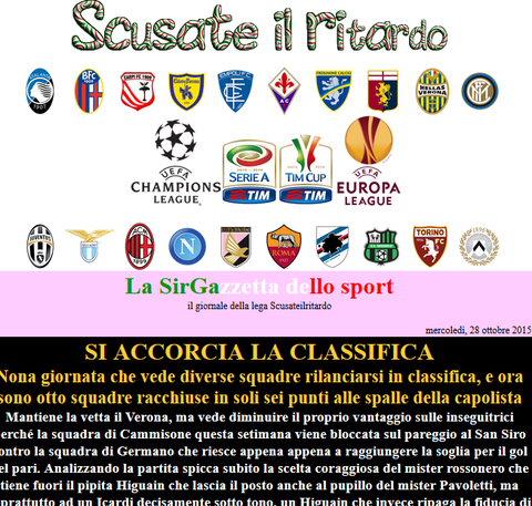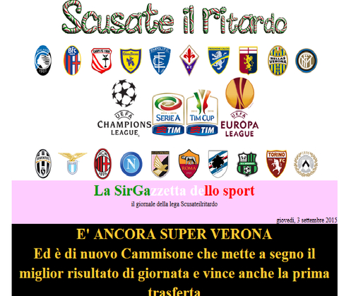 E ci tenevo a fare un discorso che riguarda tutti e nessuno in particolare. Così come voi a fine stagione farete i vostri bilanci e deciderete se la lega vi sarà piaciuta o meno e deciderete se partecipare o meno anche il prossimo anno, ci tengo a dire che lo stesso farò io in qualità di organizzatore, e cioè valuterò se tenere o meno un partecipante. Ovviamente questo non in base ai risutaltati ottenuti dalle varie squadre, perché è ovvio che non possono vincere tu...