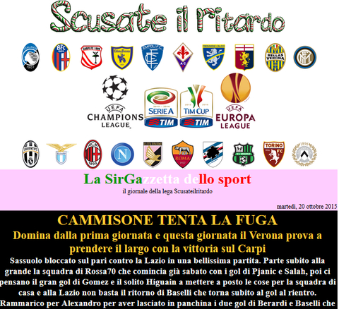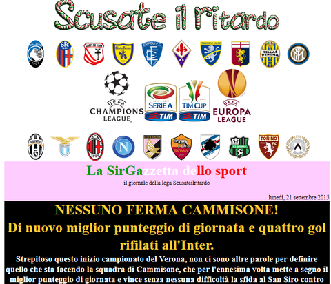 Grazie Germano, ma come sempre i complimenti vanno a chi con la propria bravura rende piacevole la lega. E in tal caso in bocca al lupo a te, sperando che il calendario possa essere un po' più favorevole e farti conquistare i punti che meritano le tue prestazioni. Ovviamente restando sempre dietro al Sassuolo :)