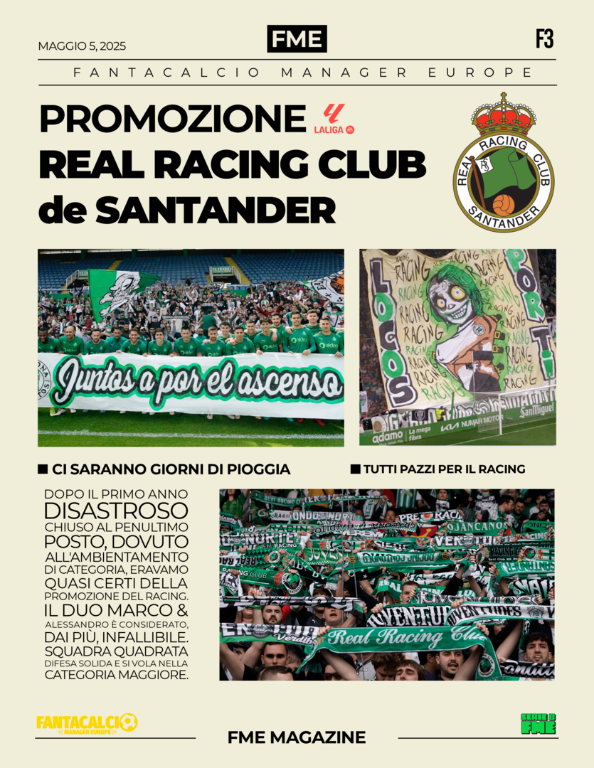 Complimenti al Racing Club di Marco & Ale che sale nella LaLiga . 👏🏻👏🏻👏🏻
