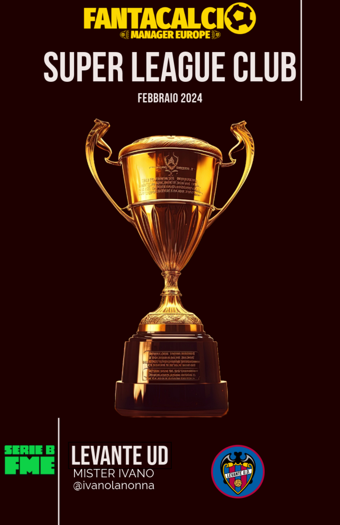 Partiamo con il fare i complimenti al Levante di @Ivano che vince la Super League Club della Serie B. Complimenti altro trofeo nella bacheca del Levante e premio in danari di 60 euro.