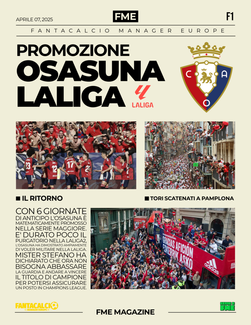 Partiamo con il fare i complimenti all'OSASUNA di Stefano, le prime pagine dei quotidiani sono tutte per lui….