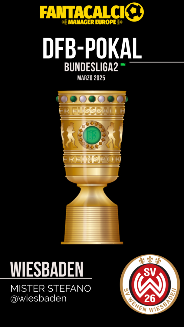 Altro trofeo per un club di Stefano @Alifuoco Stefano (il "Re" della serie B) per il Wiesbaden con finale vinta ai punti con grande rammarico per il Kaiserslautern, l'espulsione di Niang è stata determinate. Complimenti 👏🏻
