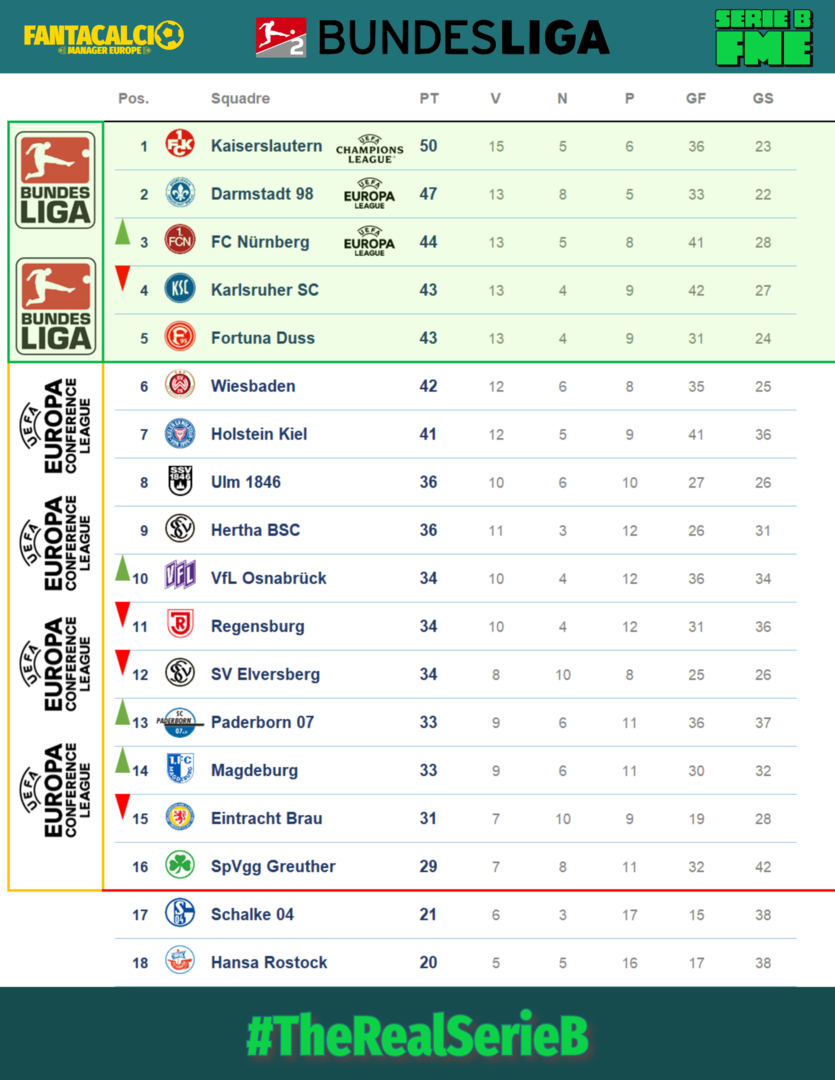 Karlsruher SC. Fortuna di nome e di fatto al 5° posto che dovrà difendere, difficilmente, la posizione da club più attrezzati. Holstein Kiel su tutti fin qui abbastanza sfortunato con il calendario. Classifica corta tutto può succedere.