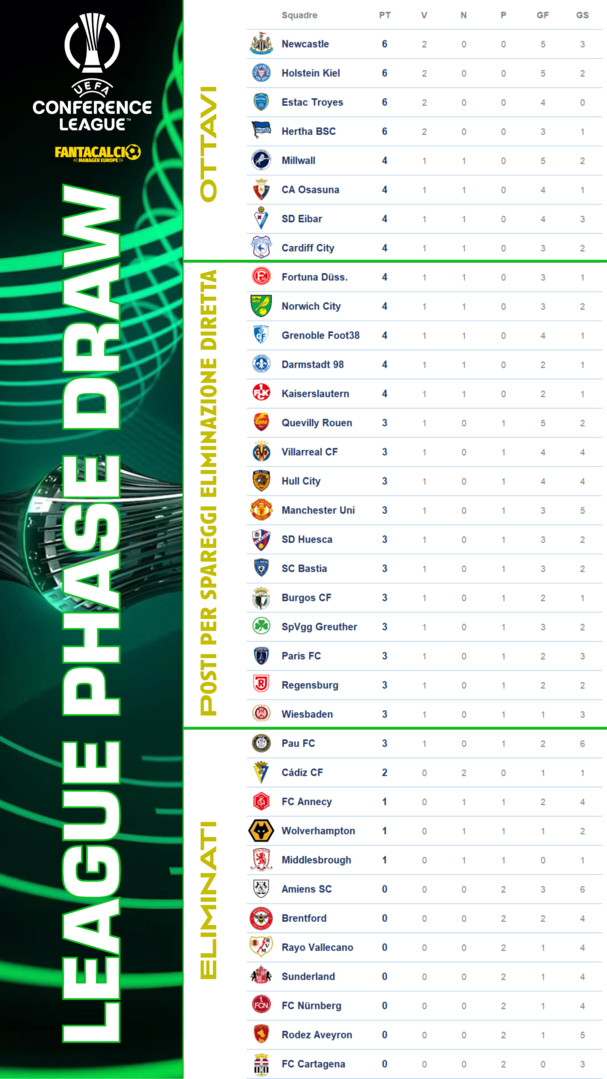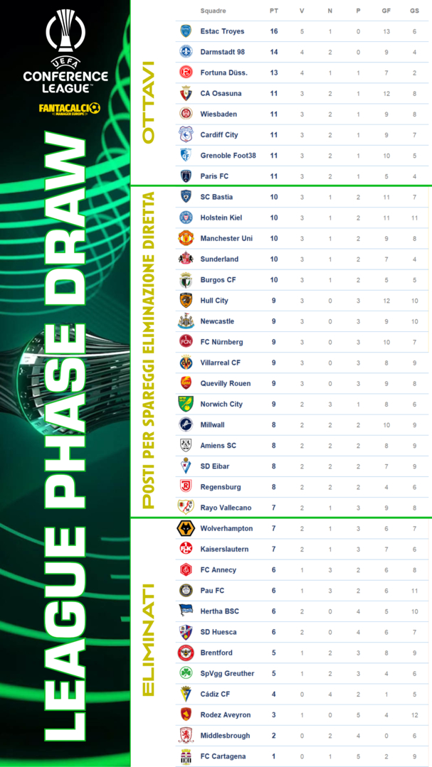 Conference League terminati i play off ecco i club qualificati agli ottavi di finale. Andata e Ritorno senza fattore campo. Finale secca.