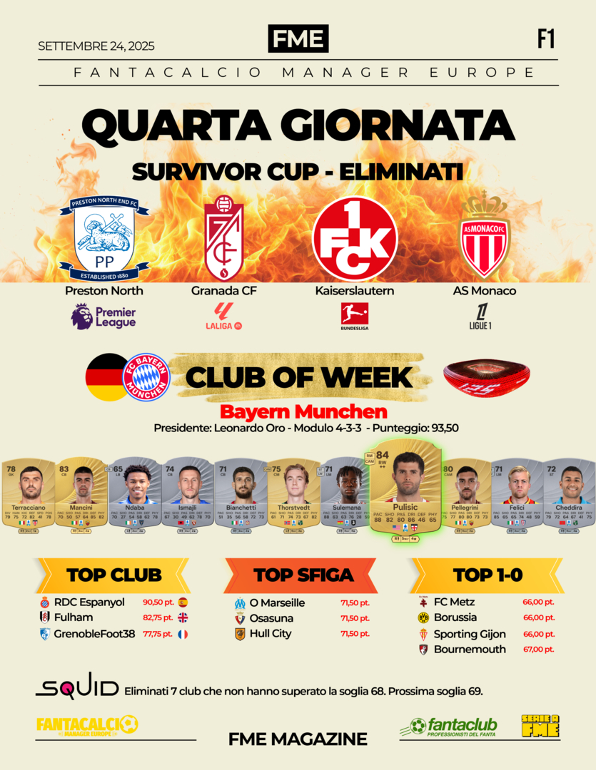 SerieA Risultati tornei. Club Team of the Week il Toulouse di @Daniele +5k šš». Top Club di giornata delleĀ altreĀ legheĀ +2k. Terminato il torneo SQUID con un vincitore morale l'Elche ma senza assegnazione titolo non avendo superato la soglia minima. Riparte dalla prossima Squid2Ā perĀ tutti.