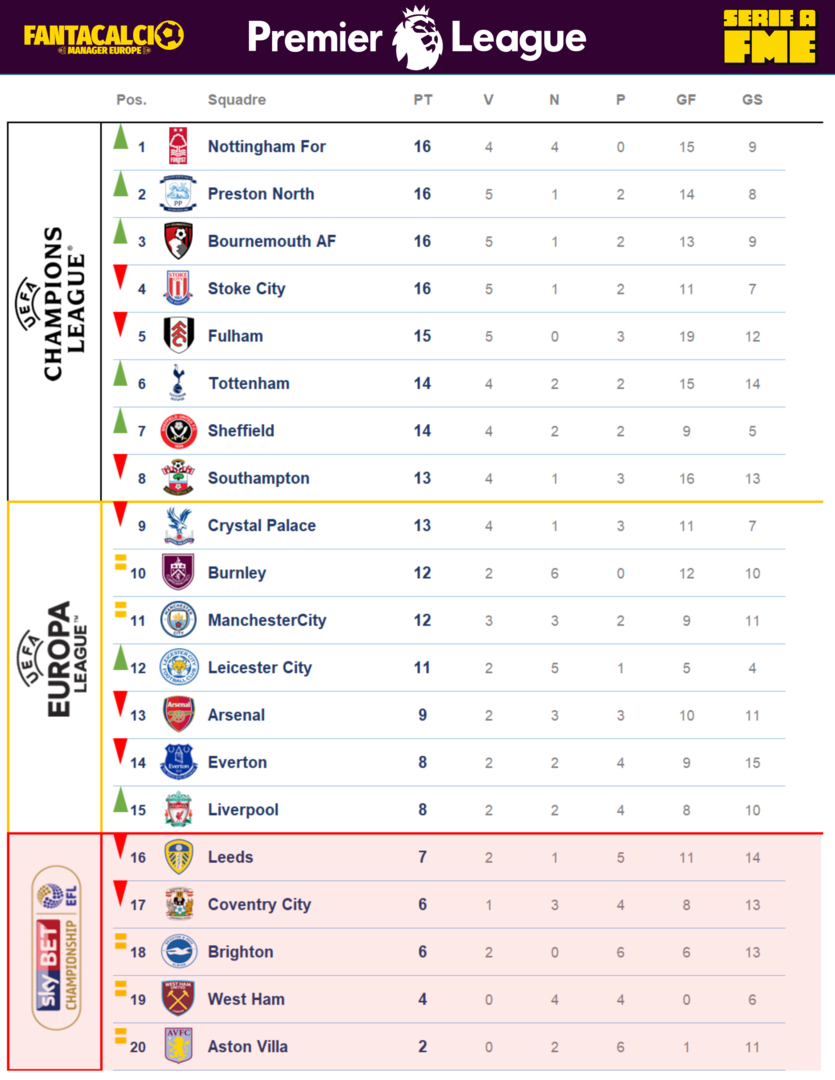Vetta affollata! 9 Club in soli 3 punti! Prima volta del Nottingham in testa, squadra in salute e quadrata 👀. Occasione persa per il Southampton che inspiegabilmente lascia in panchina un punto fermo del Club, Cataldinho! Il Liverpool ringrazia nonno D'Ambrosio. Arrivano segnali reali di salvezza del Brighton con un incredibile vittoria contro una delle prime della classe, il Fulham.