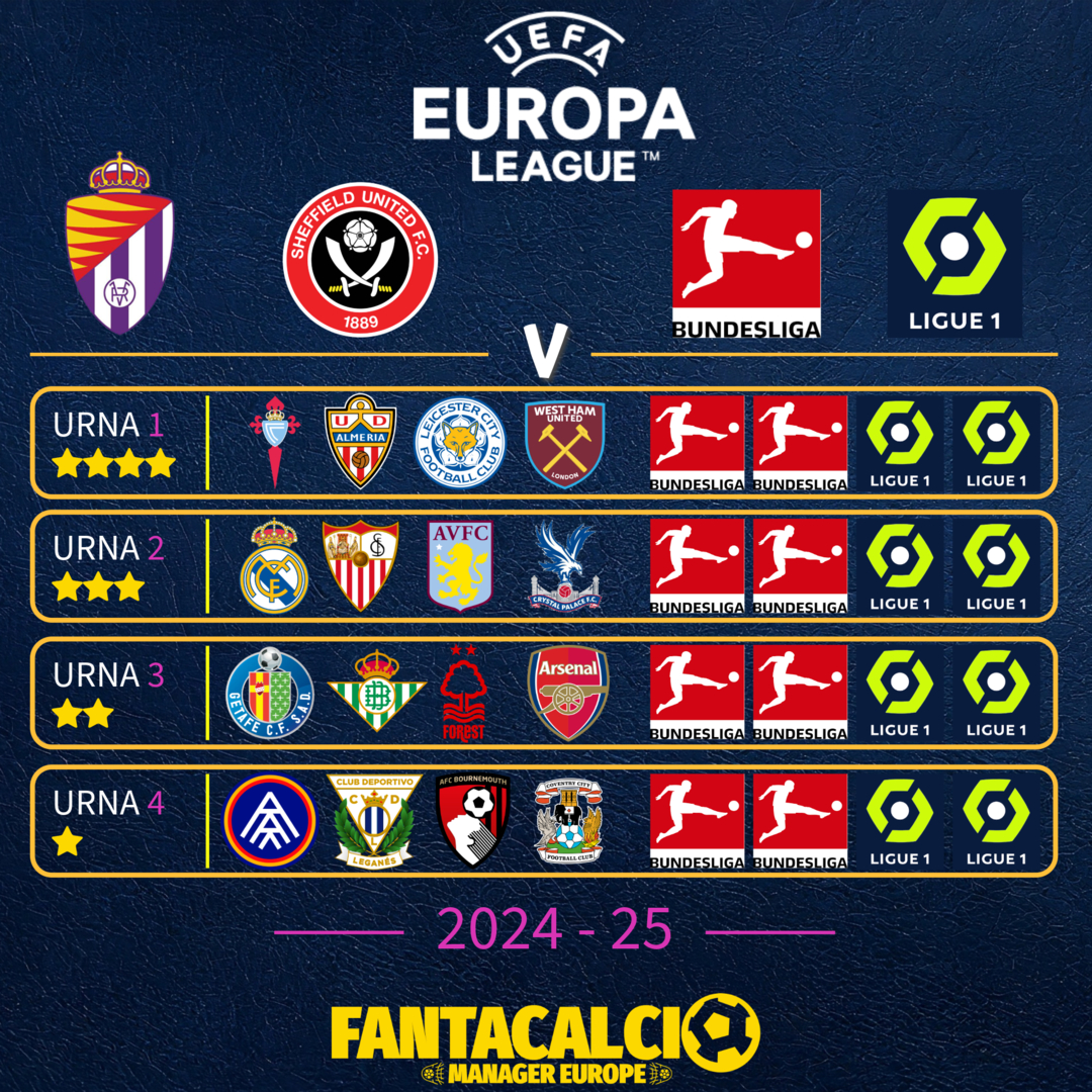 Ecco il ranking FME delle qualificate (Spagna ed Inghilterra) in Europa League della prossima nuova edizione in attesa dei i futuri responsi dai nuovi amici dalla Germania e Francia!
