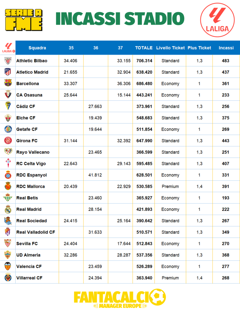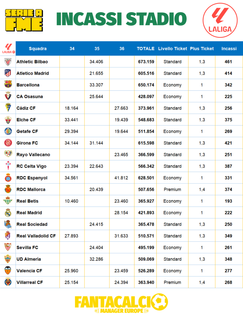 Ci avviciniamo all'ultima giornata di campionato (fatto salvo il recupero di Atalanta Fiorentina) e non abbiamo ancora il nome dei club vincenti......ma partiamo dal basso.