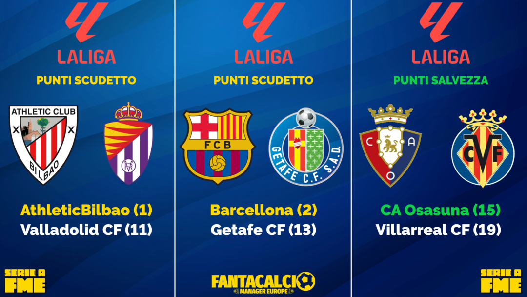 Penultimo week end. In evidenza nella LaLiga la corsa a due per il titolo. L'Osasuna con una vittoria potrebbe uscire dalla zona calda.