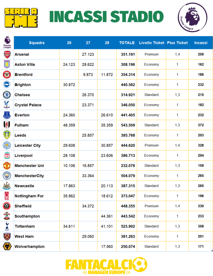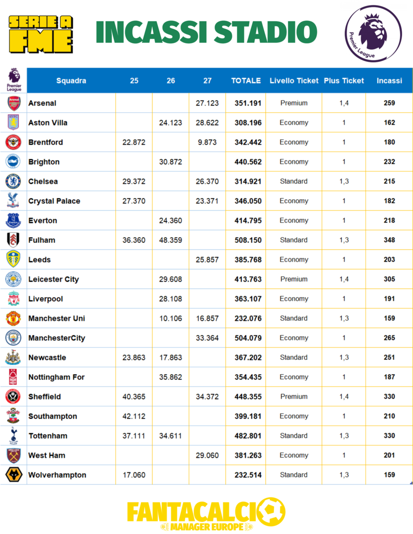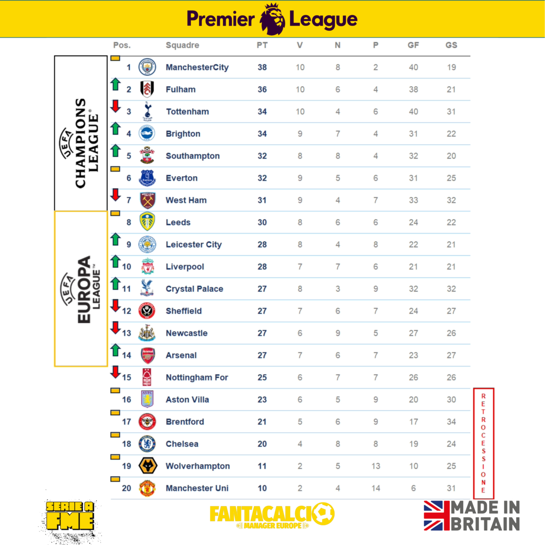 Classifica aggiornata Premier.
