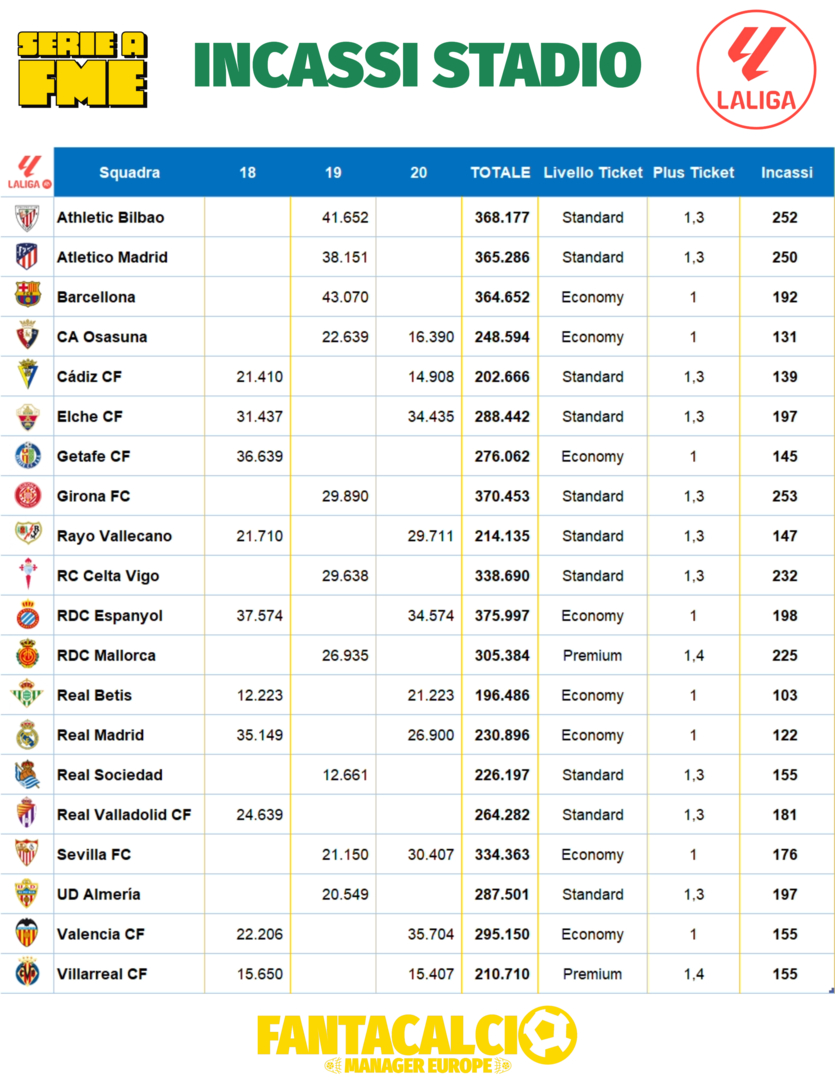 Gli altri 2 posti saranno assegnati alla prima e alla seconda neopromossa in serie B LaLiga2.
