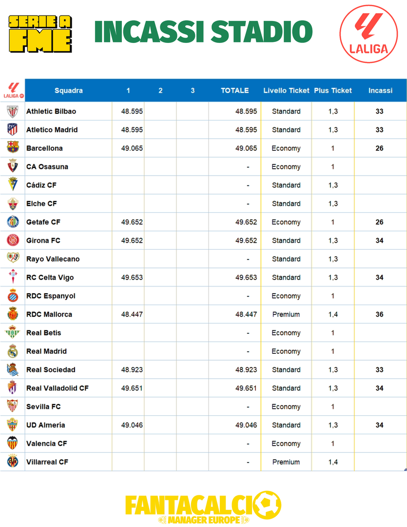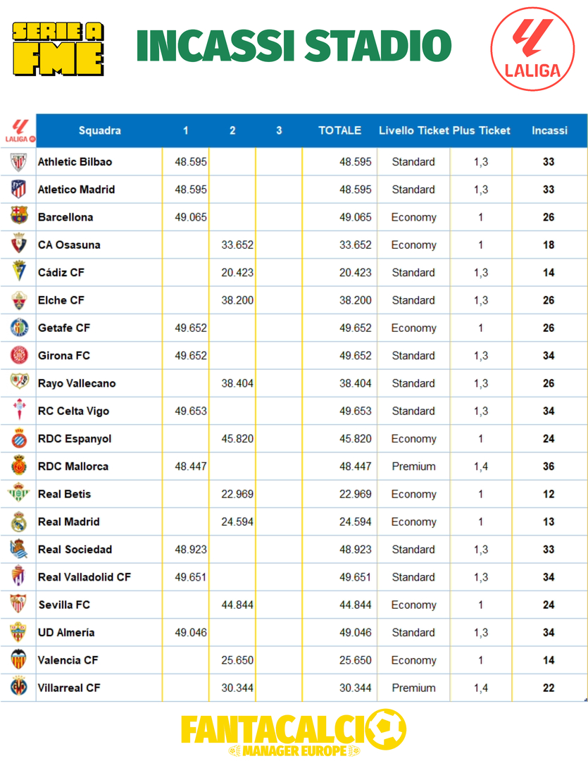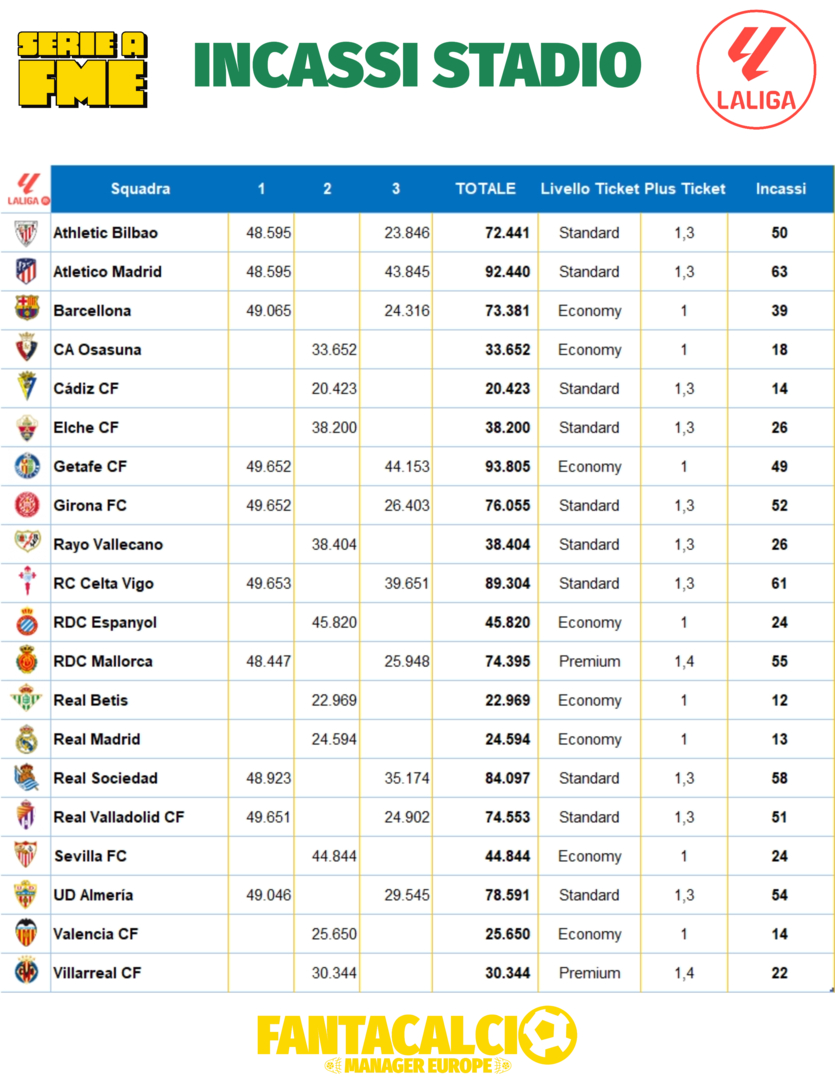 Incassi da Stadio della prima giornata delle LaLiga.