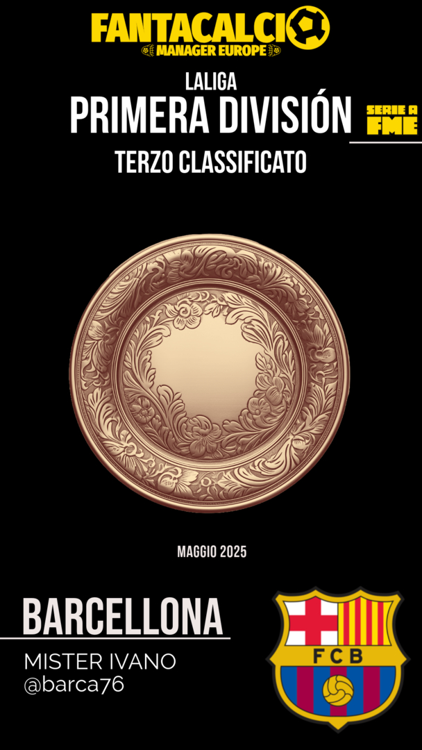 LaLiga Non poteva mancare l'appuntamento ad almeno un podio terzo classificato il Barcellona di Ivano! 👏🏻👏🏻👏🏻 +70 euro