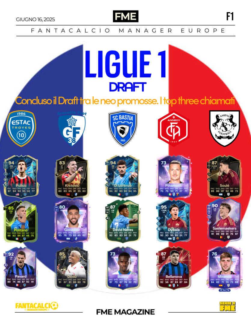 LIGUE1 concluso il Draft da 7 club tra le Neo Promosse della LIGUE1. Ecco le prime scelte.
