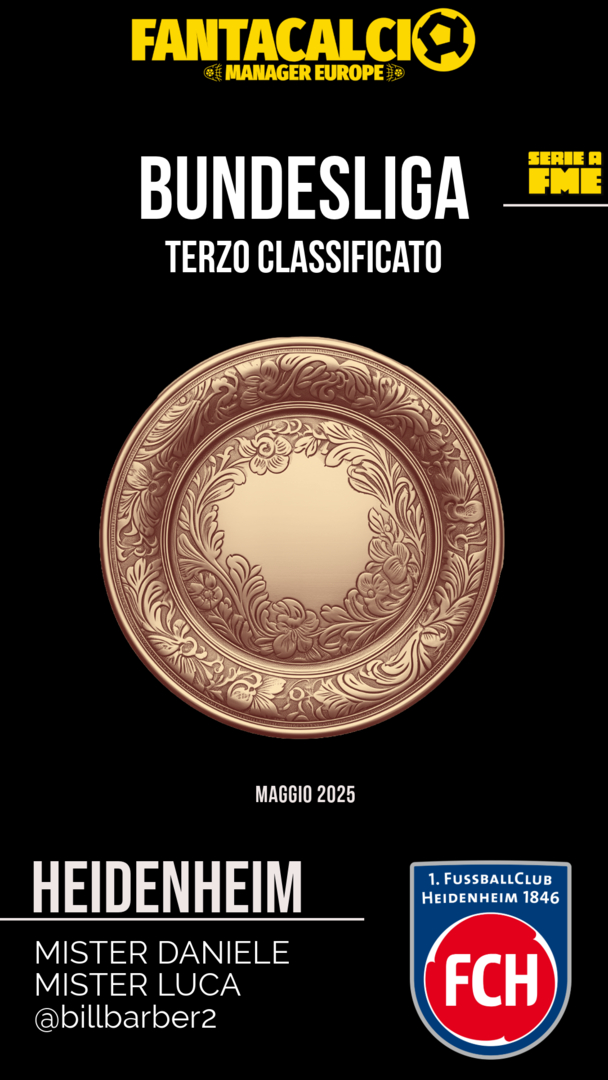 Bundesliga Forse la sorpresa della Bundes, terzo posto per l'Heidenheim del duo Daniele & Luca!! Complimenti 👏🏻👏🏻👏🏻 + 70 euro paga il Borussia di Pasquale 😆
