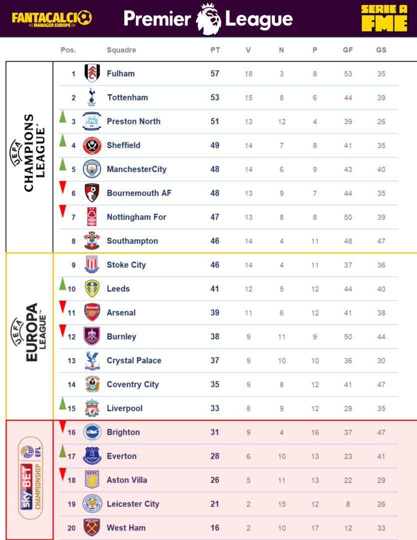 A 9 giornate dalla fine, con 27 punti a disposizione analizziamo la situazione nei quattro campionati di SerieA. Vicinissimo l’anno scorso al titolo ci riprova il Fulham a laurearsi campione di Inghilterra tallonato dal Tottenham e dalla neo promossa Preston North, squadra imbattibile, solo 4 sconfitte e domenica c’è proprio Preston vs Fulham. Attenzione alla risalita del campione in carica Manchester City la meta non è lontana e il liberarsi di Dybala è stato già un punto a suo favore. Occhio alla parte bassa della classifica la quota salvezza è stimata intorino ai 45 pt. in molti ad inizio a...