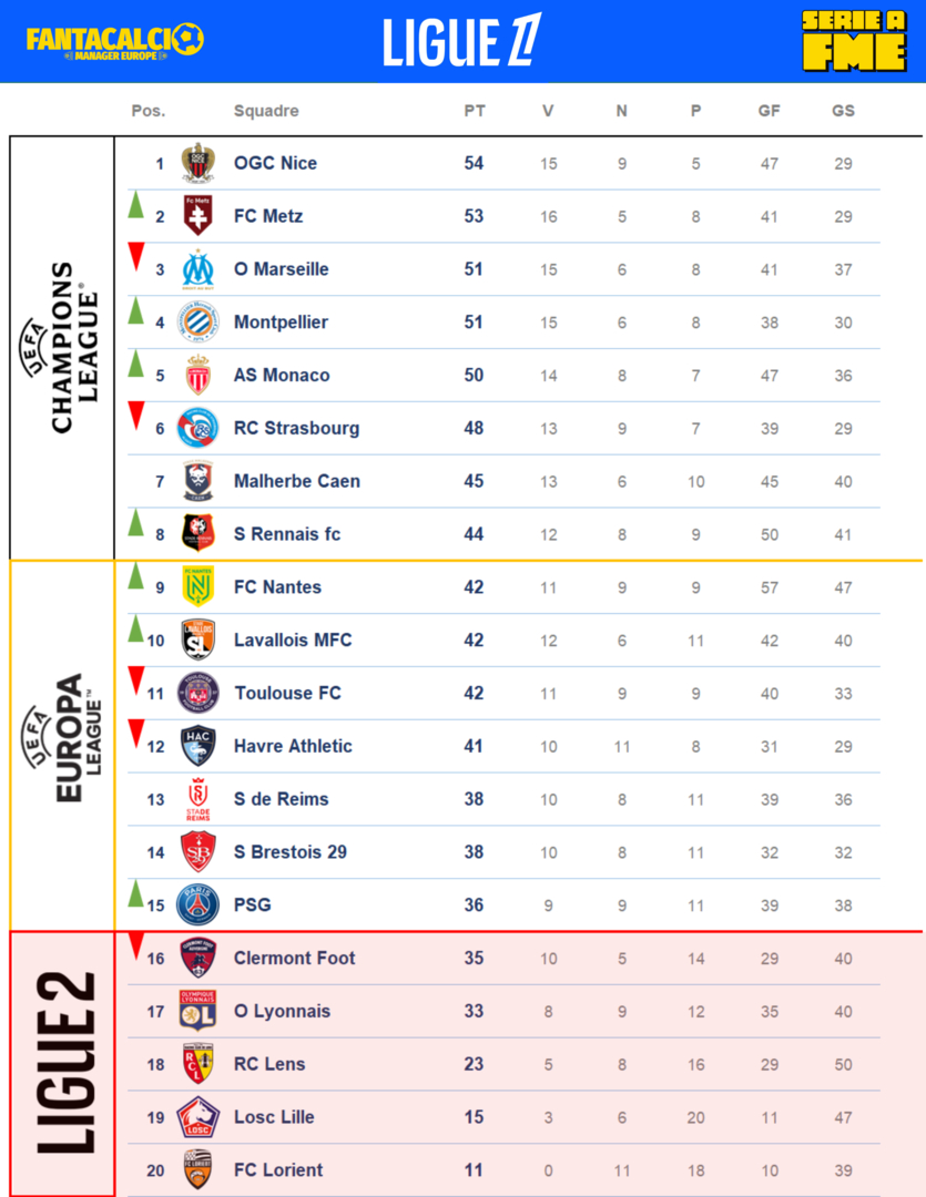 incredibile il FC Metz di Alessandro che con un uomo in meno (!) porta a casa il titolo, per nulla scontato, approfittando anche della peggior prestazione stagionale del Nantes. Complimenti 👏🏻