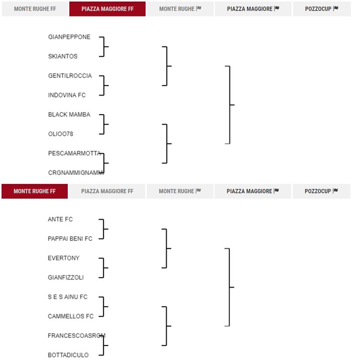 Come da regolamento le peggiori terze, Ponide Fattu e Fellatio FC, hanno dovuto abbandonare anzitempo i rispettivi tornei. Gli accoppiamenti sono stati effettuati utilizzando la funzione di disposizione casuale delle ...