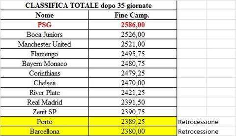 II Edizione e nuovo format ... Il Campionato di Apertura è stato vinto dal Manchester United (ronaldinho84) che ha replicato anche in Copa SudAmericana ... mentre il Campionato di Clausura è stato vinto dal PSG (mistergianni), invece in Copa Libertadores ha trionfato il Real Madrid (hartigan). Tutti questi vincitori, insieme ai primi classificati dei due tornei, si sono ...