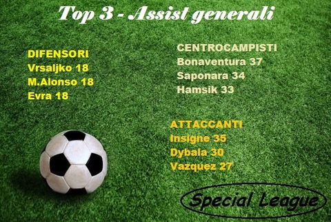 Ormai manca poco all'ingresso nella nostra lega dei nuovi ed esclusivi bonus-malus, ecco qui la top 3 degli assist generali. Le statistiche complete le potete visualizzare nel nostro sito(http://specialleague.altervista.org/).