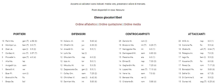 Terri non tieni conto del tuenover se hai giocatori di squadre big con impegni ravvicinati, degli infortuni, e di qualche giocatore seconda scelta che fa parte di ogni rosa di squadre formate in leghe ad asta. Già senza Covid poteva succedere, ora se ne togli una settimana 4 o 5 alla stessa squadra per Covid diventa tutti più complicato.