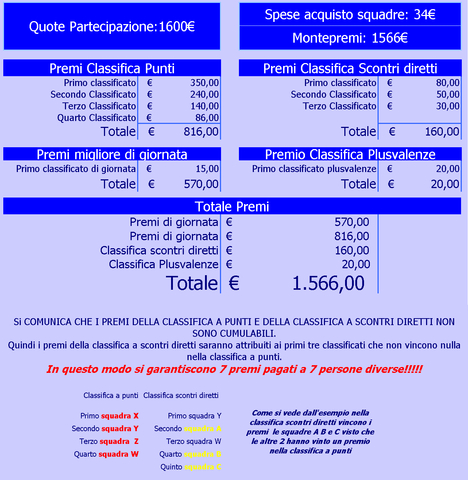 Comunico che i premi di giornata saranno pagati alla fine del girone di andata ed alla fine del girone di ritorno.