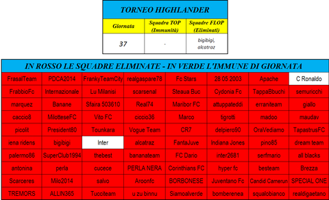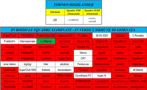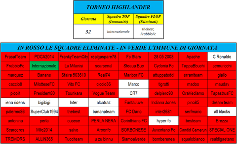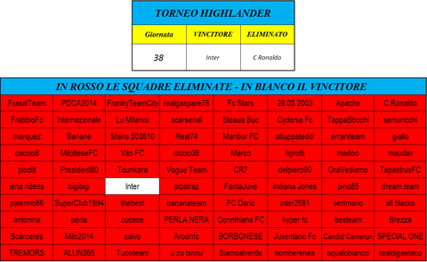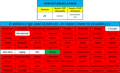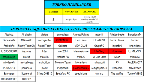 Con l'inizio della nuova stagione di FANTASERIEATEAM parte anche il TORNEO HIGHLANDER che come spiegato nel regolamento da quest'anno sarà in 2 edizioni, n°1 per il girone di andata e n°1 per il girone di ritorno del campionato di Serie A.