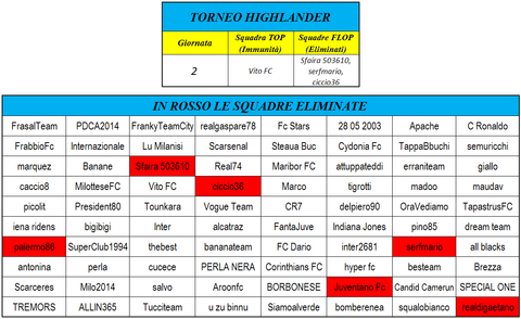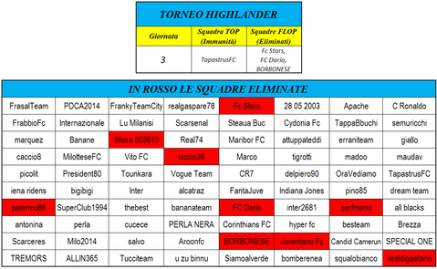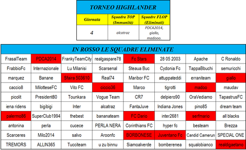 Ricordiamo che questa giornata (4a) è stata l'ultima in cui le squadre eliminate erano le ultime 3. Dalla prossima giornata fino alla fine del campionato verranno eliminate le ultime 2.