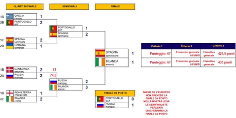 Per i 4 ancora in corsa per il fantaeuropeo ricordo che il punteggio nei pronostici della giornata vale come secondo criterio in caso di parità di punteggio..