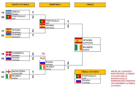 Iniziamo dal TABELLONE PLAY OFF, i quarti di finale della Uefaeuro2012 sono stati combattutissimi... La prima semifinale per pura coindidenza è uguale a quella vera, infatti, si scontreranno PORTOGALLO e SPAGNA.
