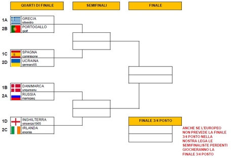 Ecco il tabellone dei quarti di finale...domani in home ci saranno i risultati dei gironi, al momento non presenti per impegni di lavoro