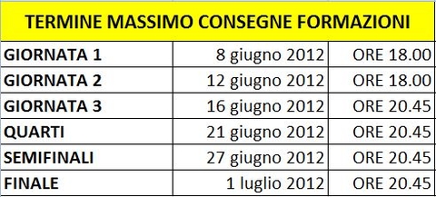 Ricordo a tutti di consegnare la formazione su totalcalcio entro le 18.00, il MERCATO VERRA' CHIUSO e riaperto dopo la fase a gironi...
