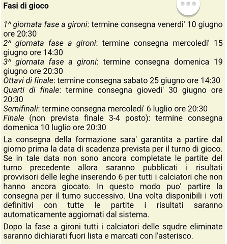La lista dei calciatori con le rispettive quotazioni e' curata dallo staff di Fantacalciamo. E' disponibile sia la modalita' di gioco con i ruoli tradizionali che la modalita' di gioco con trequartista. Le quotazioni rimarranno inalterate per tutta la durata del gioco.
