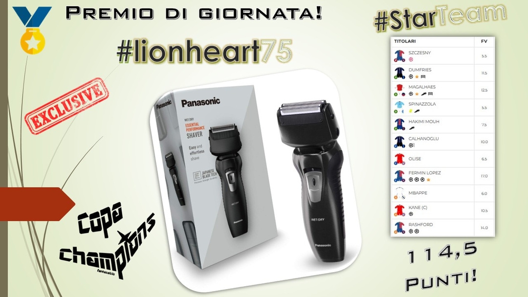 Complimenti a #lionheart75, che con la sua squadra #Star Team ha totalizzato il miglior punteggio di giornata #3, realizzando ben 114,5 punti!!