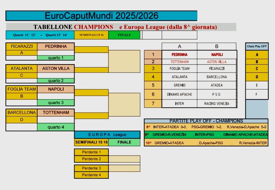 Dalla 11' la nostra lega si allineerà (secondo lo schema riportato) agli ottavi di Champions.