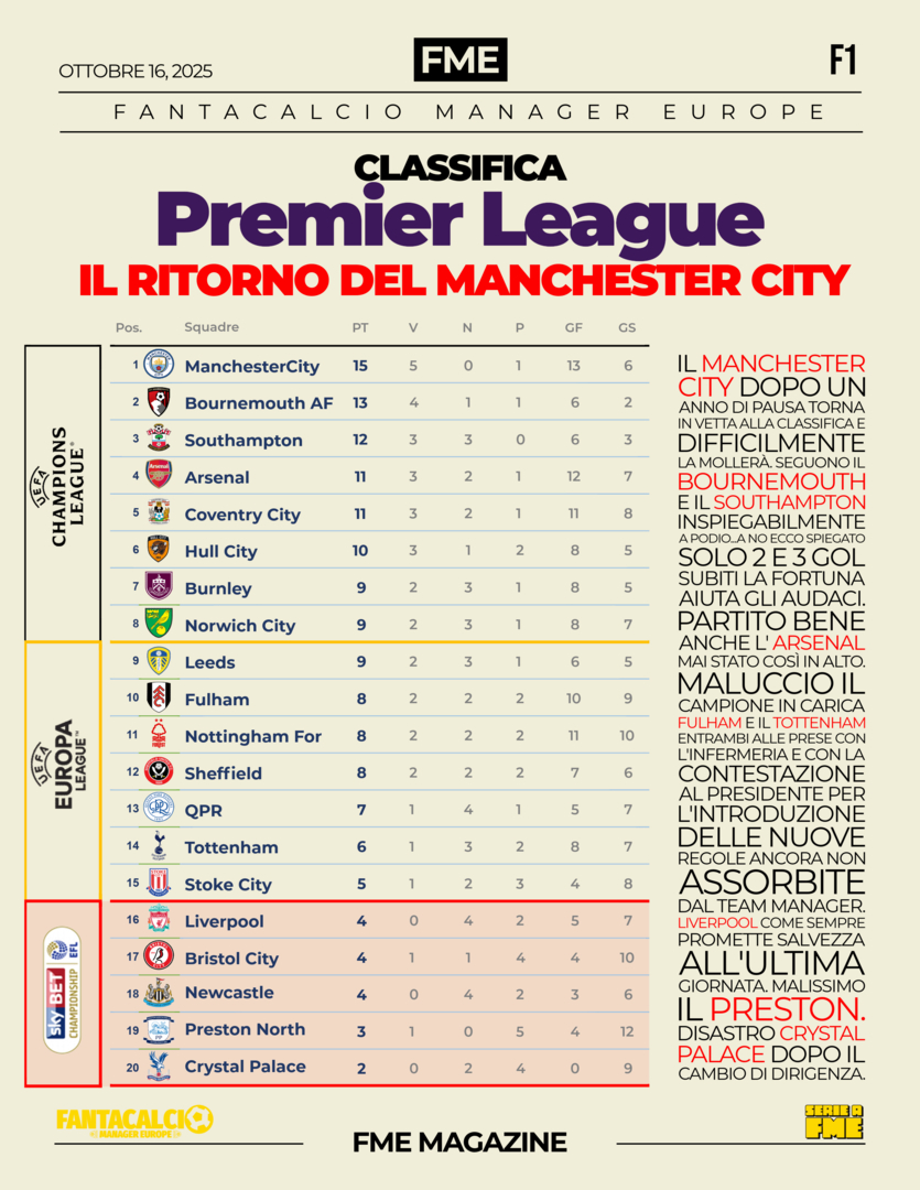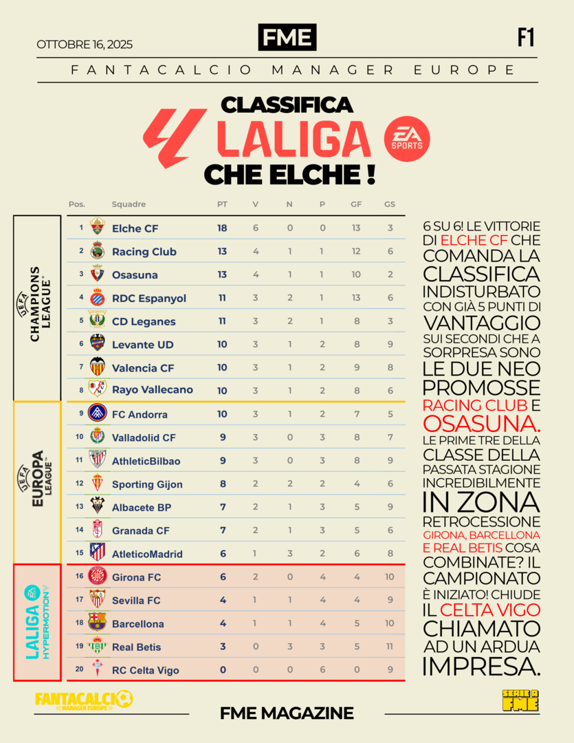 SerieA primo giro alla 6° giornata analizziamo le classifiche