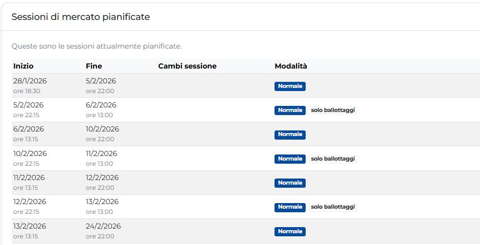 - Aggiunte due sessioni di mercato il 10/02 e 12/02