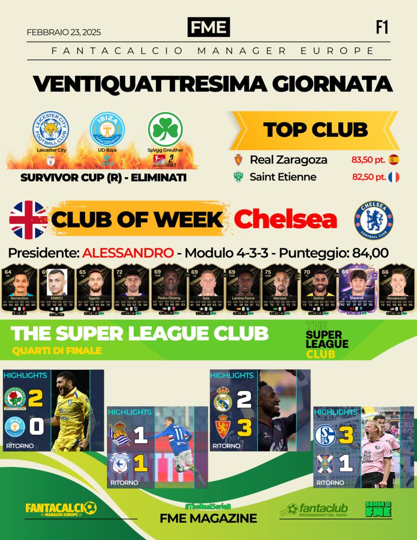 SerieB Risultati tornei. Club Team of the Week il Chelsea di Alessandro (Fanta) +5k 👏🏻. Top Club di giornata delle altre leghe +2k.
