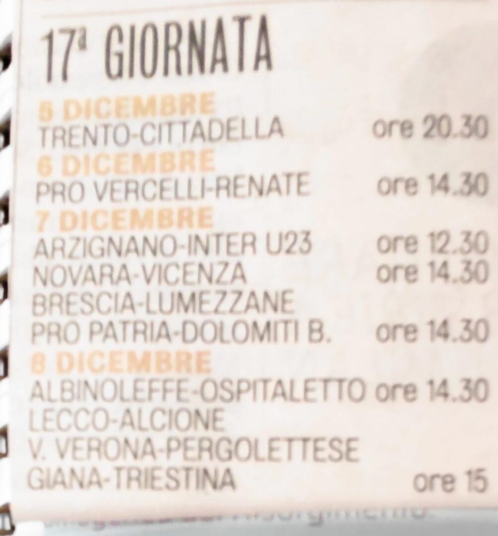 Di seguito il programma della 17 giornata (per noi 12^gionata di Lega)